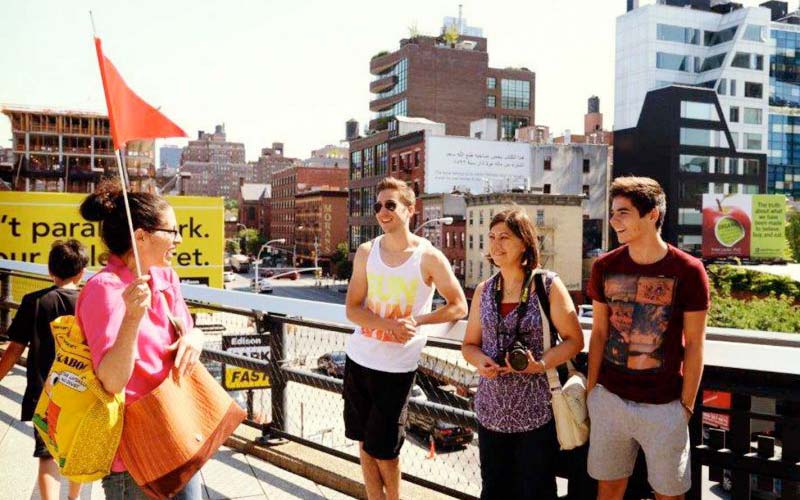 Next, we’ll walk part of the High Line, once an industrial artery of New York, now a scenic oasis high above the street. Enjoy art, meadows, flowers, views, and more from this elevated trail.