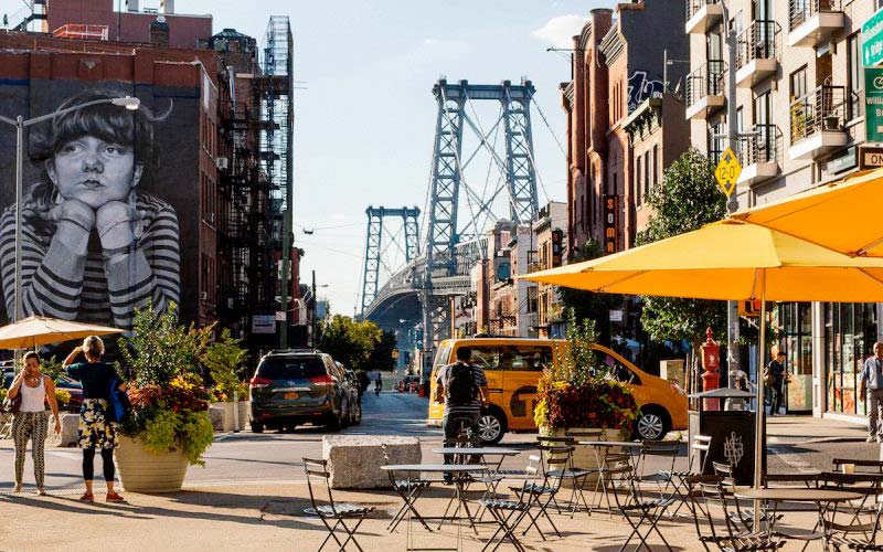 Leaving Queens behind, your next stop is the Bushwick Collective in Brooklyn, currently NYC’s most prolific neighborhood for street art and graffiti murals. It’s a foodie destination, too, so we’ll break to grab some food.